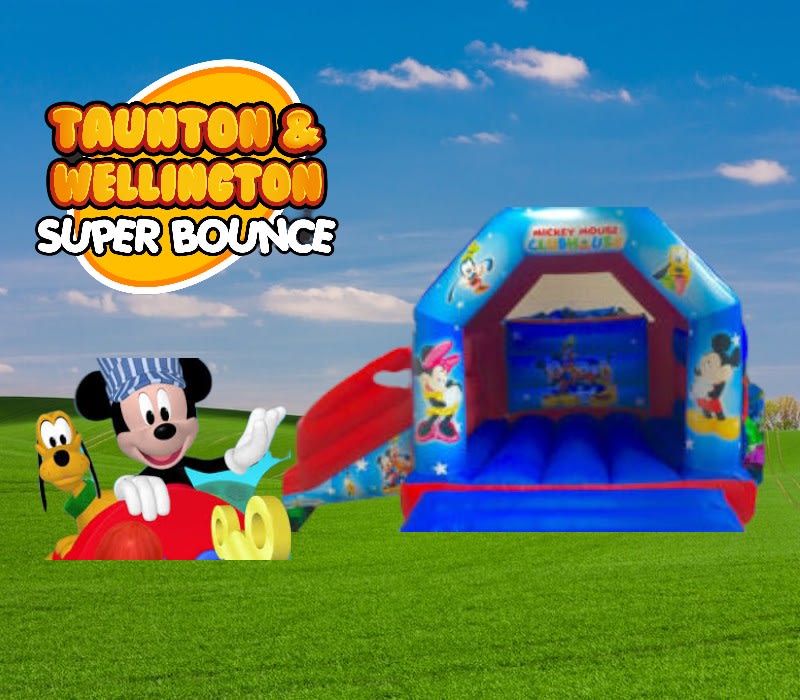 We are proud to provide bouncy castle hire services to the following areas: Taunton, Wellington, Bridgwater, Burnham-on-Sea, Minehead, and the surrounding areas. Whether you're hosting a birthday party, a school event, or a community gathering, we can deliver our Mickey Mouse Club House Castle And Slide right to your location.