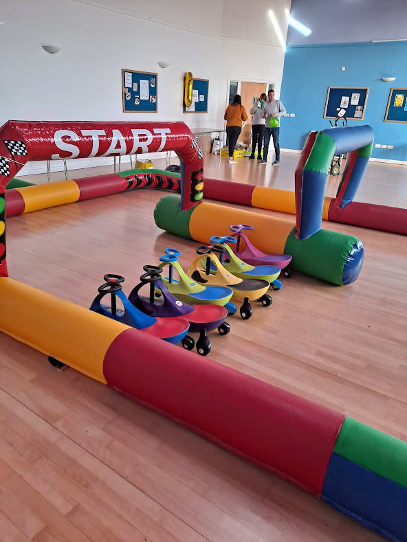 Here we have our new Didi car race track that comes with 5 cars ,ideal for halls .