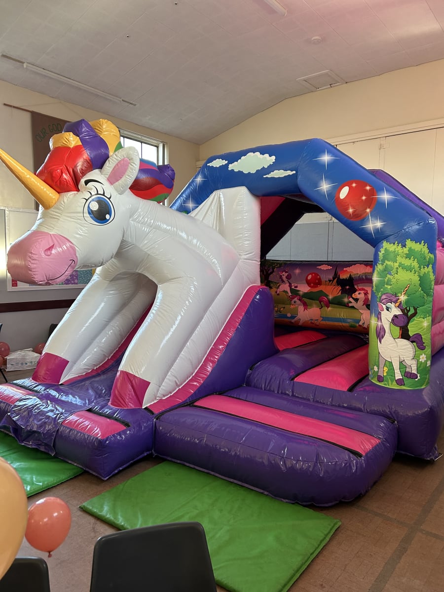 New for 2023 3D Unicorn Bouncy Castle and Slide 17ft x 12ft x 9.8ft in Bristol, Weston super mare, Taunton, Bridgwater, Burnham on sea, Clevedon, Nailsea, Bath, Gloucester, and Newport