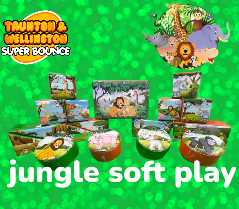 Make your next event unforgettable with our bouncy castle and soft play hire in Bridgwater, Burnham on Sea, Weston Super Mare, Clevedon, Nailsea, Portishead, Bristol, Bath, Gloucester, and Newport. Our Jungle Soft Play with Mats is available for hire, ensuring a stress-free setup with delivery and collection included.