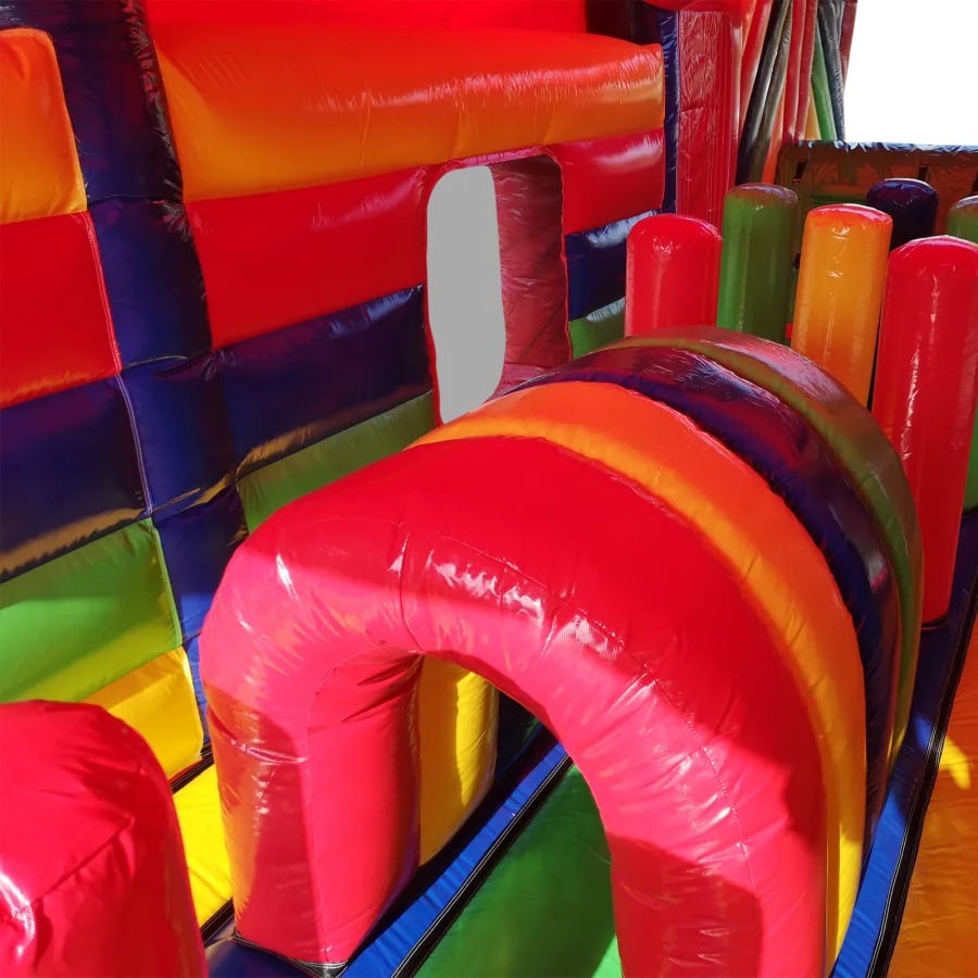Our 45ft Multi-Color Assault Course is not just a one-size-fits-all. It can be easily customized to suit the specific needs of your event. Whether you want to focus on fun or foster a competitive spirit, this inflatable is versatile enough to do both. The latest artwork theme promises to delight and captivate participants of all ages, making it a hit at any gathering. 🎨
