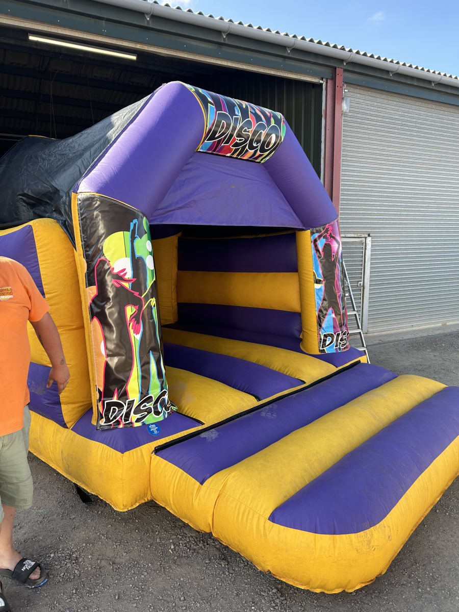 here we have our disco bouncy castle that comes with speaker and light ,so the kids can bounce to there very own disco