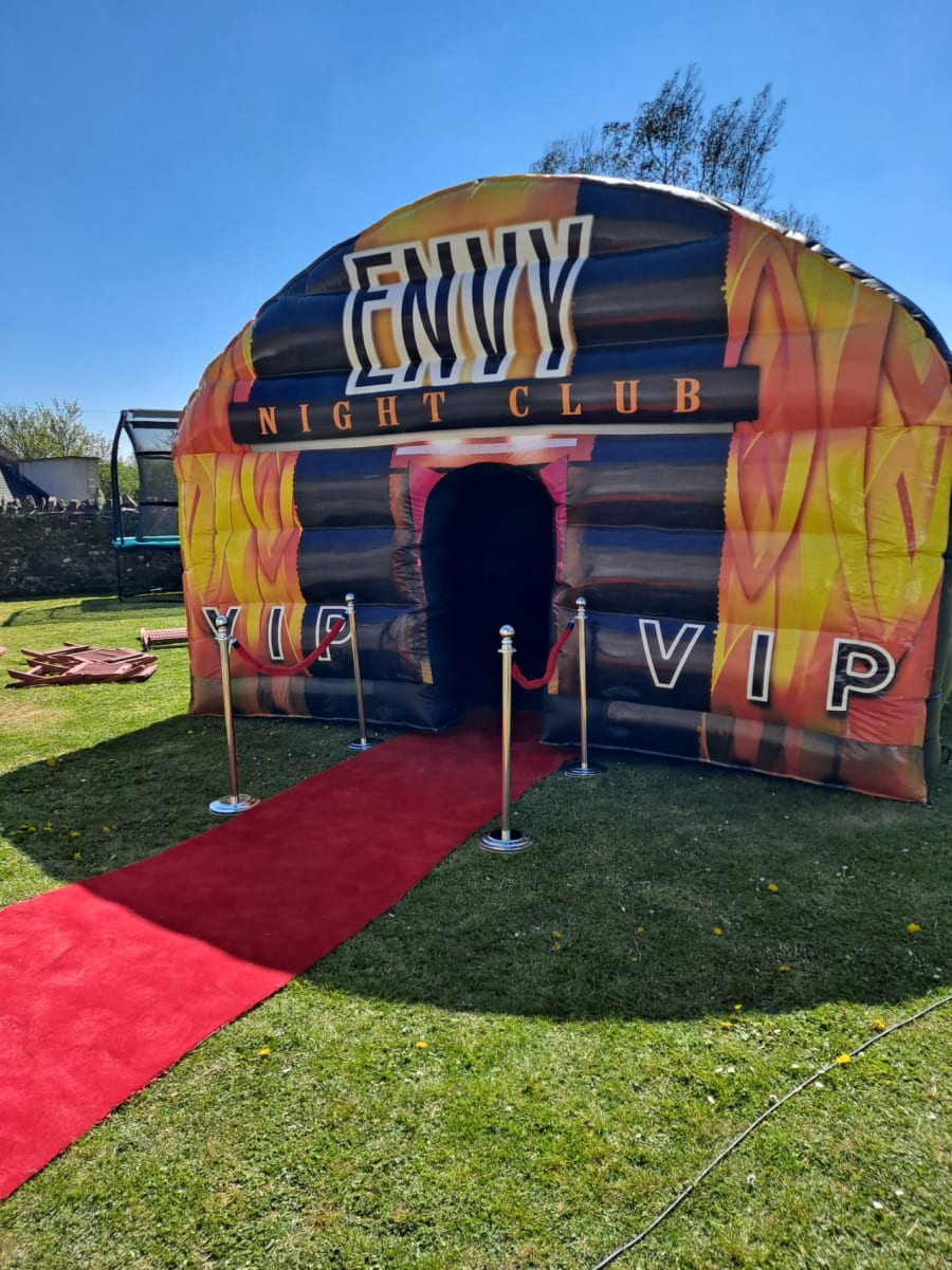 New for 2021 Envy inflatable night club Here we have our latest addition to our night club range THE ENVY these units are so popular we just keep adding more comes with blue tooth speaker and disco lights ,why pay a dj and pay for a venue when you can have it in your back garden perfect for parties and celebrations . nice graphics and plenty of room to party you can add lasers and a smoke machine for £30.00 extra, available Bristol, Bath ,Bridgwater, Clevedon , Nailsea ,Taunton and most of Gloucester and surrounding areas call now 07977011759 or book on line size 17 x 15 feet