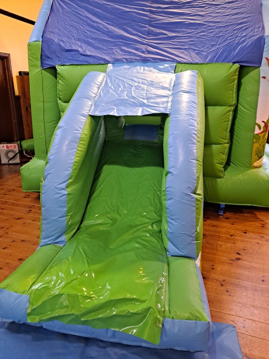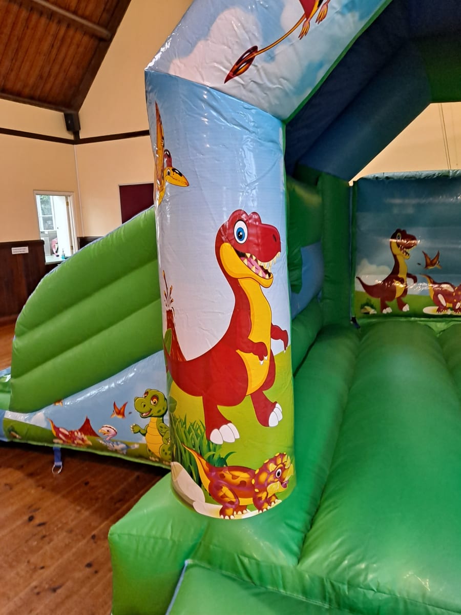 Here we have our new Dinosaur bouncy castle and slide bright colours and amazing graphics are sure to make this a hit.