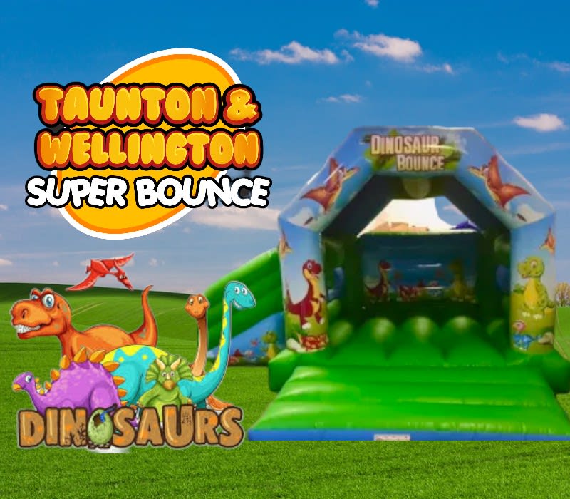 Our bouncy castle hire service is available in Taunton, Wellington, Bridgwater, Burnham on Sea, Minehead, and surrounding areas. So, if you're located in any of these areas, you can bring the excitement of the Dinosaur Bounce and Slide right to your doorstep.🚚🌟