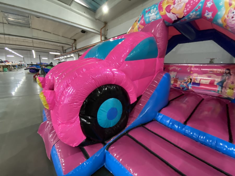 Introducing our stunning 3D Dream Car Castle and Slide! This enchanting inflatable is every little princess's dream come true. With its sparkling glitter material and mesmerizing graphics, it will be the highlight of any party or event.