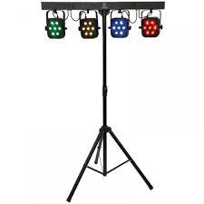 here we have a set of led par cans complete with stand and leads, will chase ,beat ,single colour, sound to light