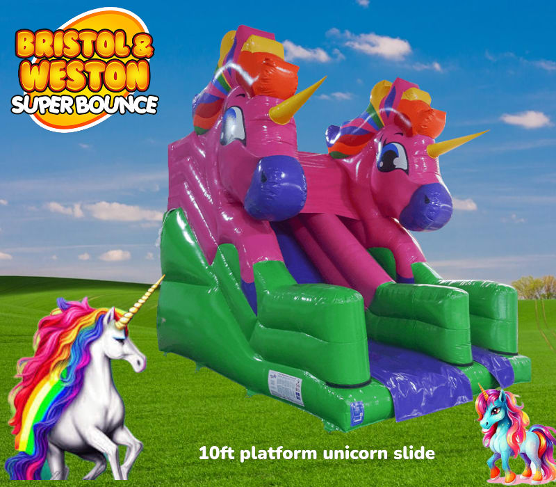 Step into a world where fairytales come to life with Airquee's enchanting 10ft Unicorn Dream Slide, flanked by two majestic unicorn heads! This fantastical inflatable slide offers children an awe-inspiring journey, ensuring every glide is sprinkled with a touch of magic and wonder.