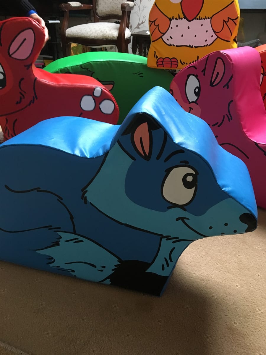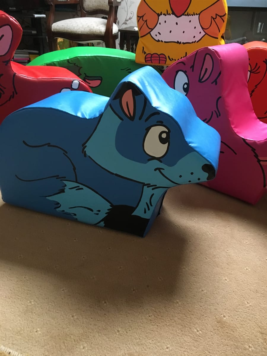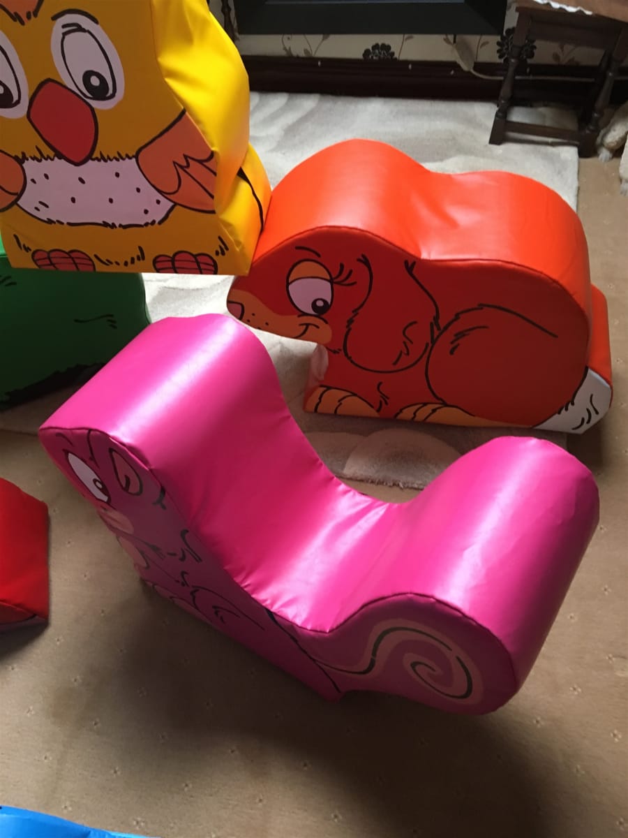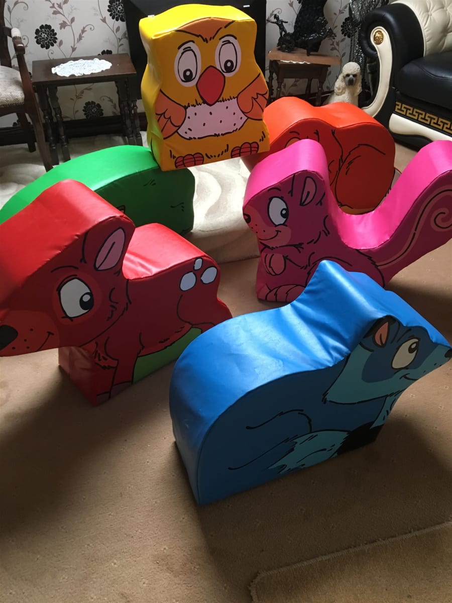 here we have our new soft play woodland animals ,lovely bright colors and cute animals that the little ones can sit on and play with.