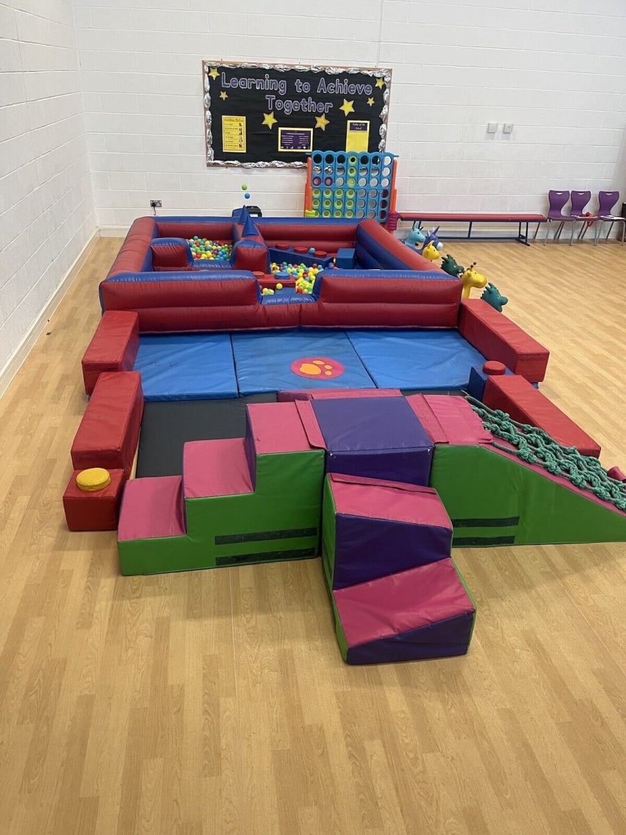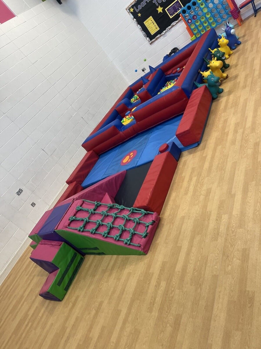 that has climbing net slide ,tunnel ,balance beams , soft play Lego and happy hoppers.